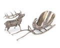 The Reindeer Sleigh Centerpiece features a highly detailed pewter reindeer figural pulling an old fashioned, branch runner sleigh to fill with flowers, candies, nuts, any holiday delight you desire.