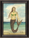 Mermaid waiting for her sailor to return is staring out at his ship from the beach. Stunning framed print for your home at the beach.