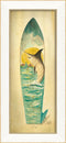 Great colors. Surfboards and the beach, just the combination for summer. Just a neat framed print for your beach house.