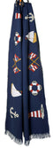 White whales glide through the sea on this navy blue blanket. It's a sublime addition to any nautical or seaside-themed décor.